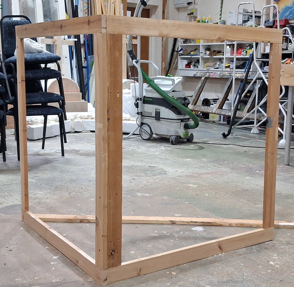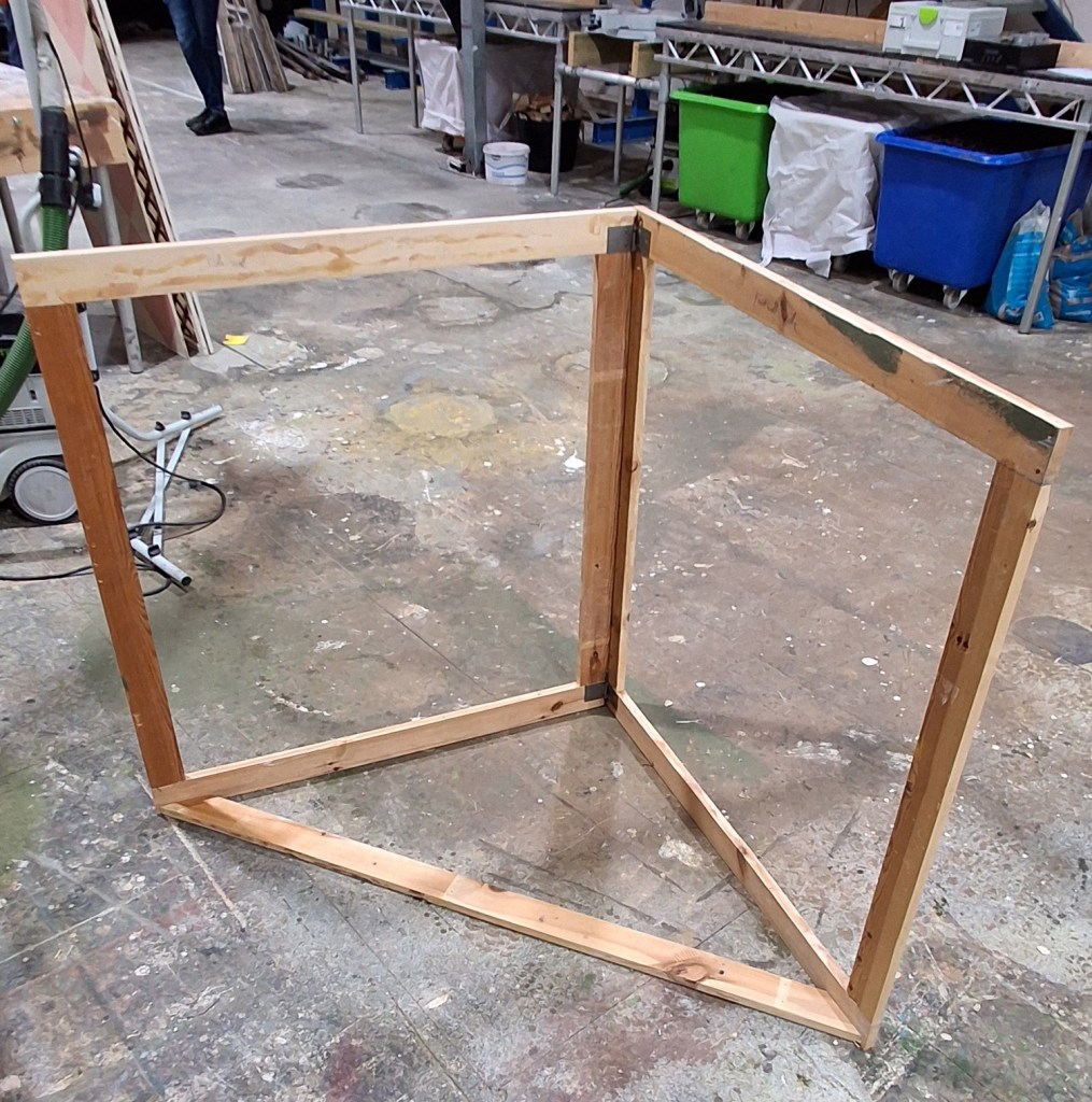 This is the wooden structure for my independent project model of a 1:10 scale Norman castle. I repurposed wood from old flats, which I cleaned, sanded and cut to size.